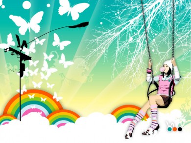 I love the background of it, you know, the rainbow and the clouds / snow, the butterflies and the sky. Wow!