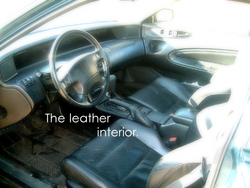Real leather, oh wow, just somethign to burn your ass on a hot day anyways. My sister owns a 99 GSR, that has full leather for your information jerk off.